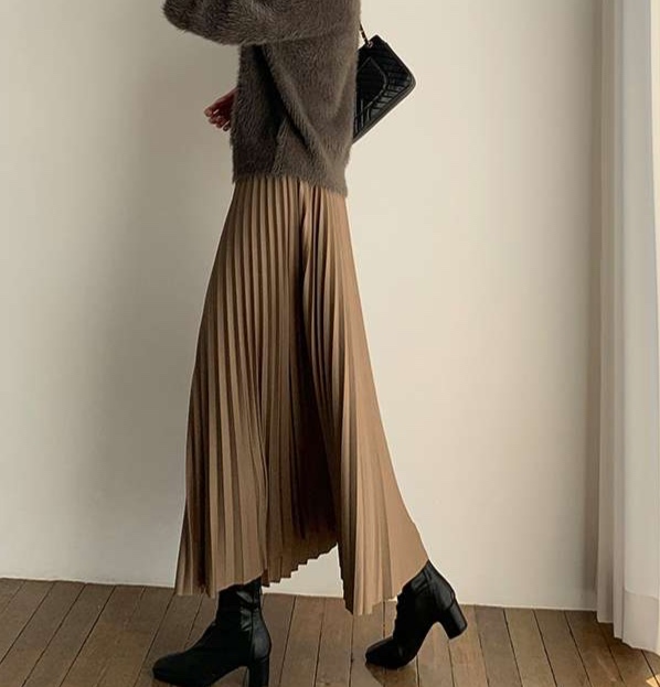 プリーツの自然な動きが歩くたびに美しく揺れ、秋冬の街歩きを優雅に演出します。