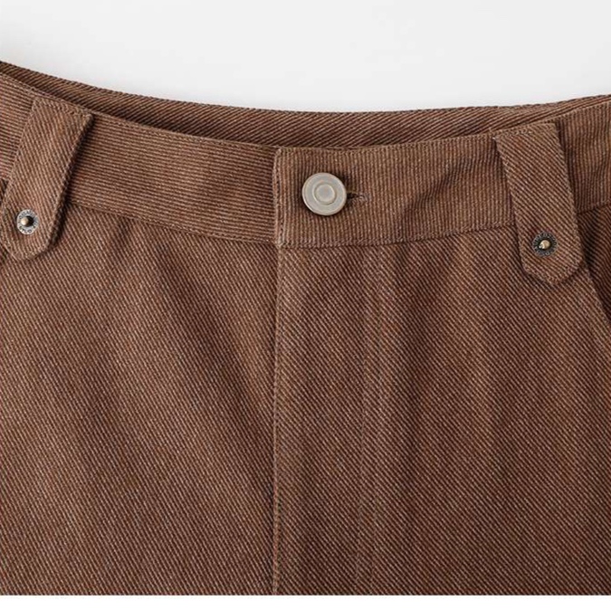 ウエスト位置が高めで脚長効果があり、ゆとりのあるシルエットが大人っぽい雰囲気を演出
