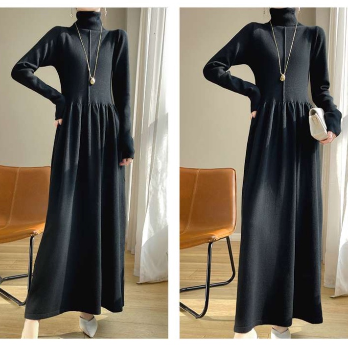 40代の女性に似合う洗練されたタートルネックワンピース。