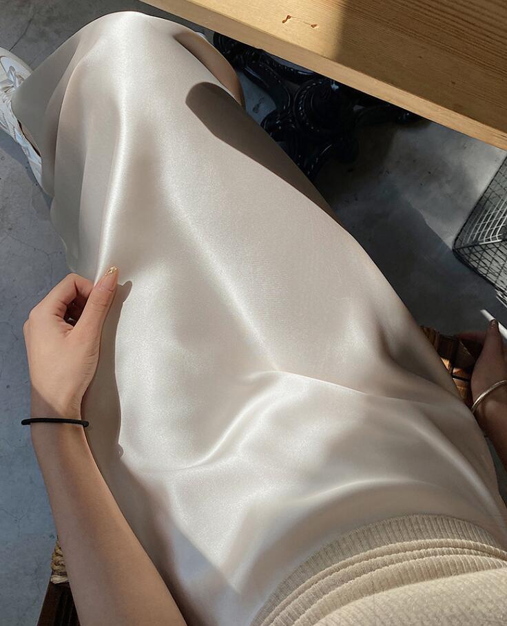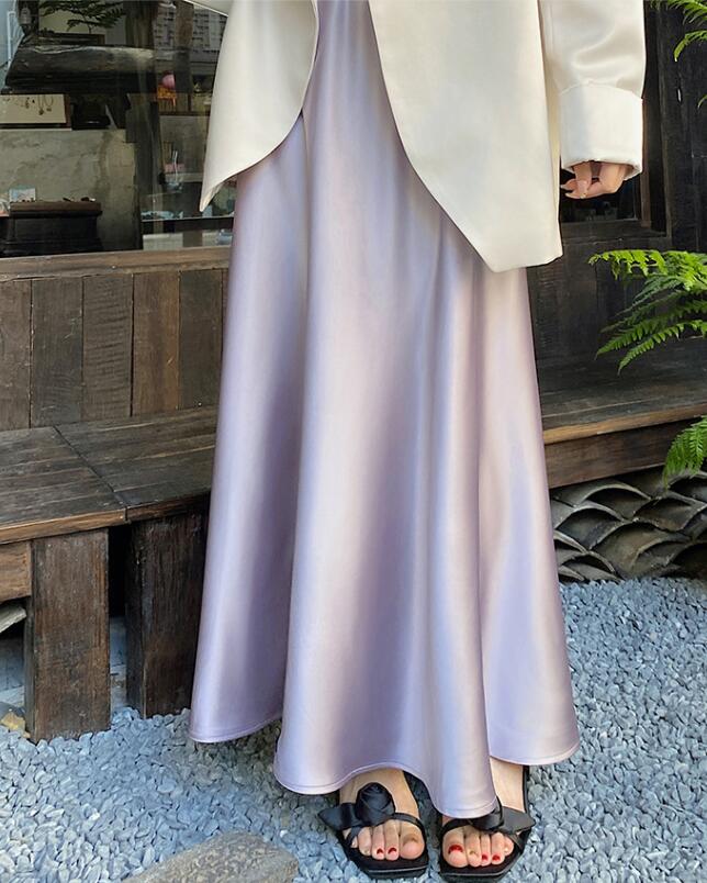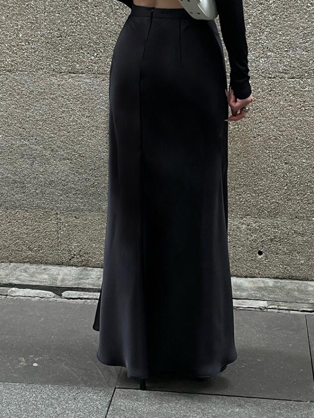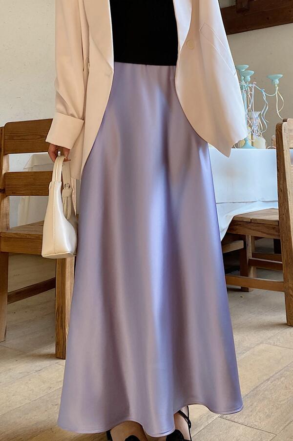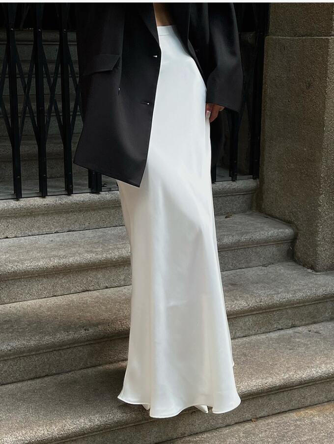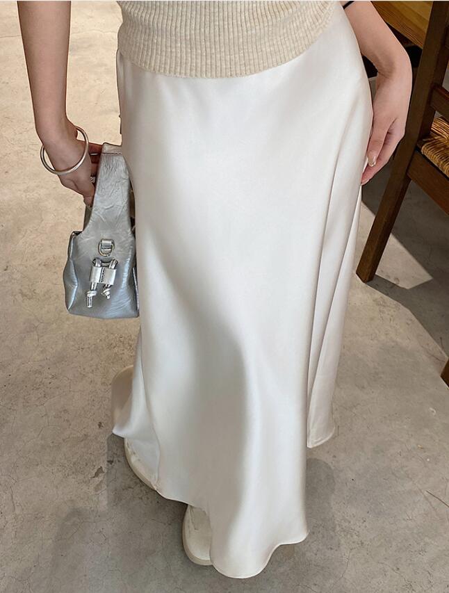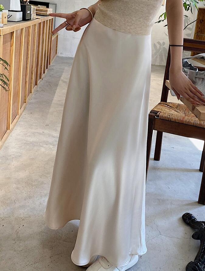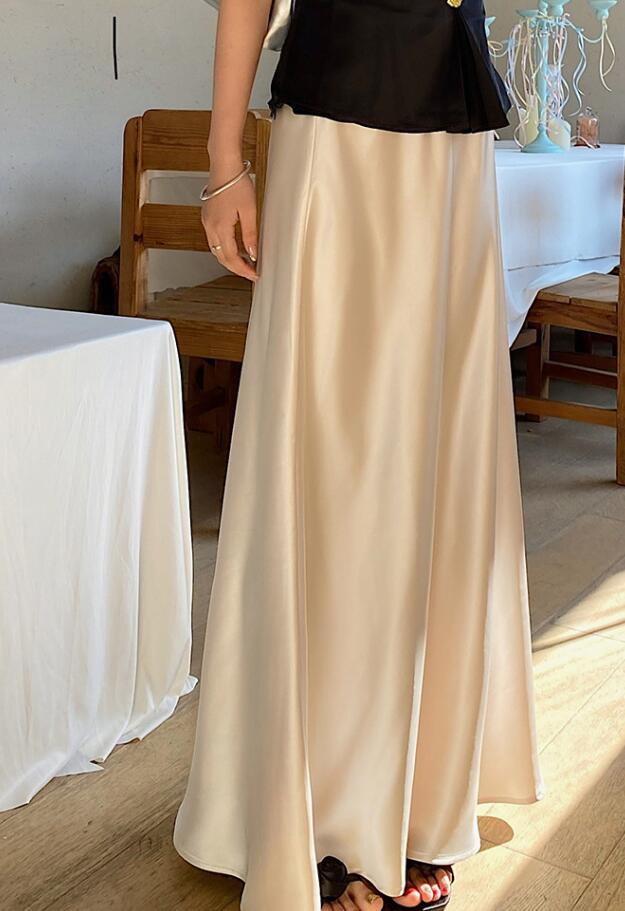 40代ファッションにぴったりの上品なベージュロングスカートです。