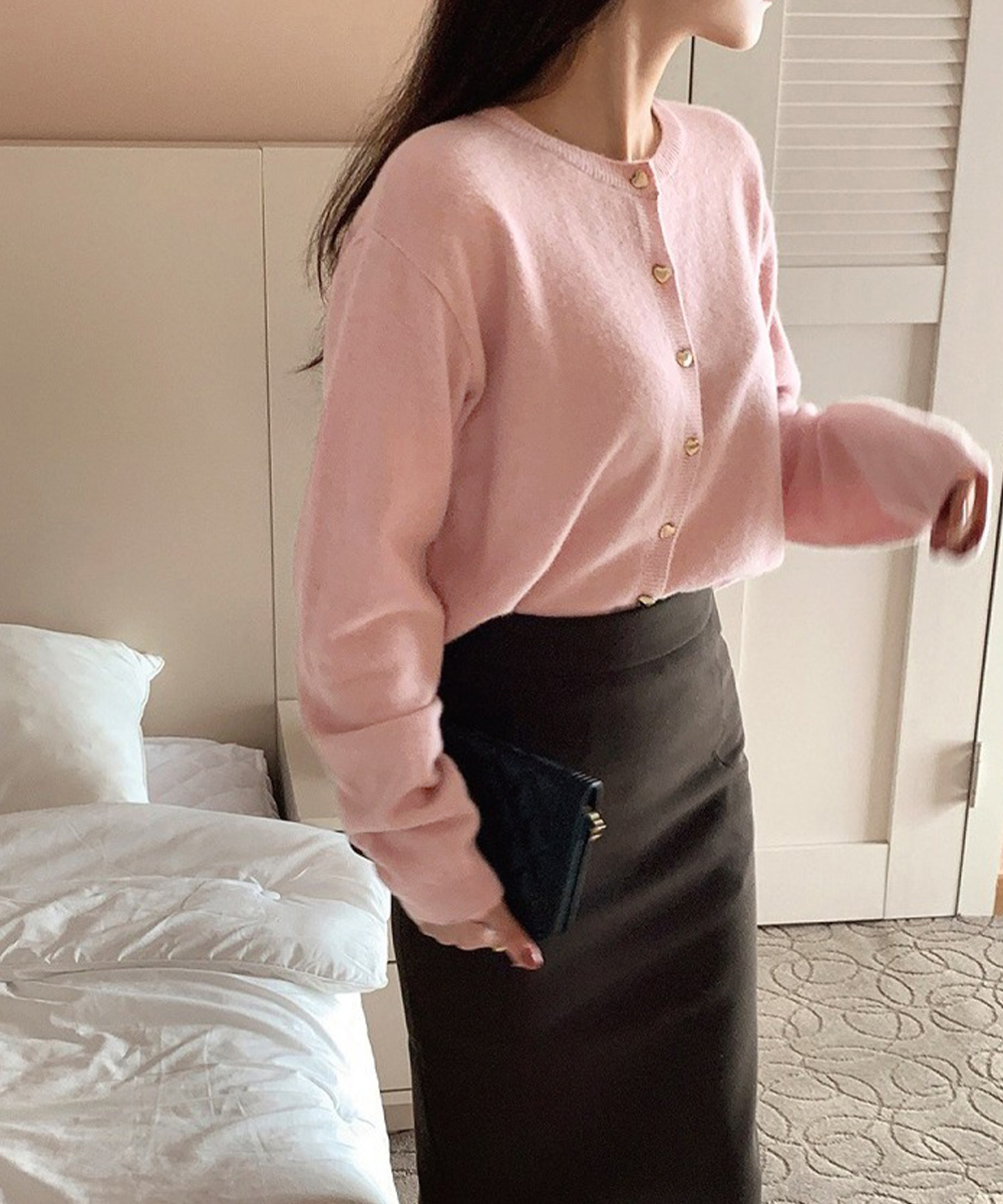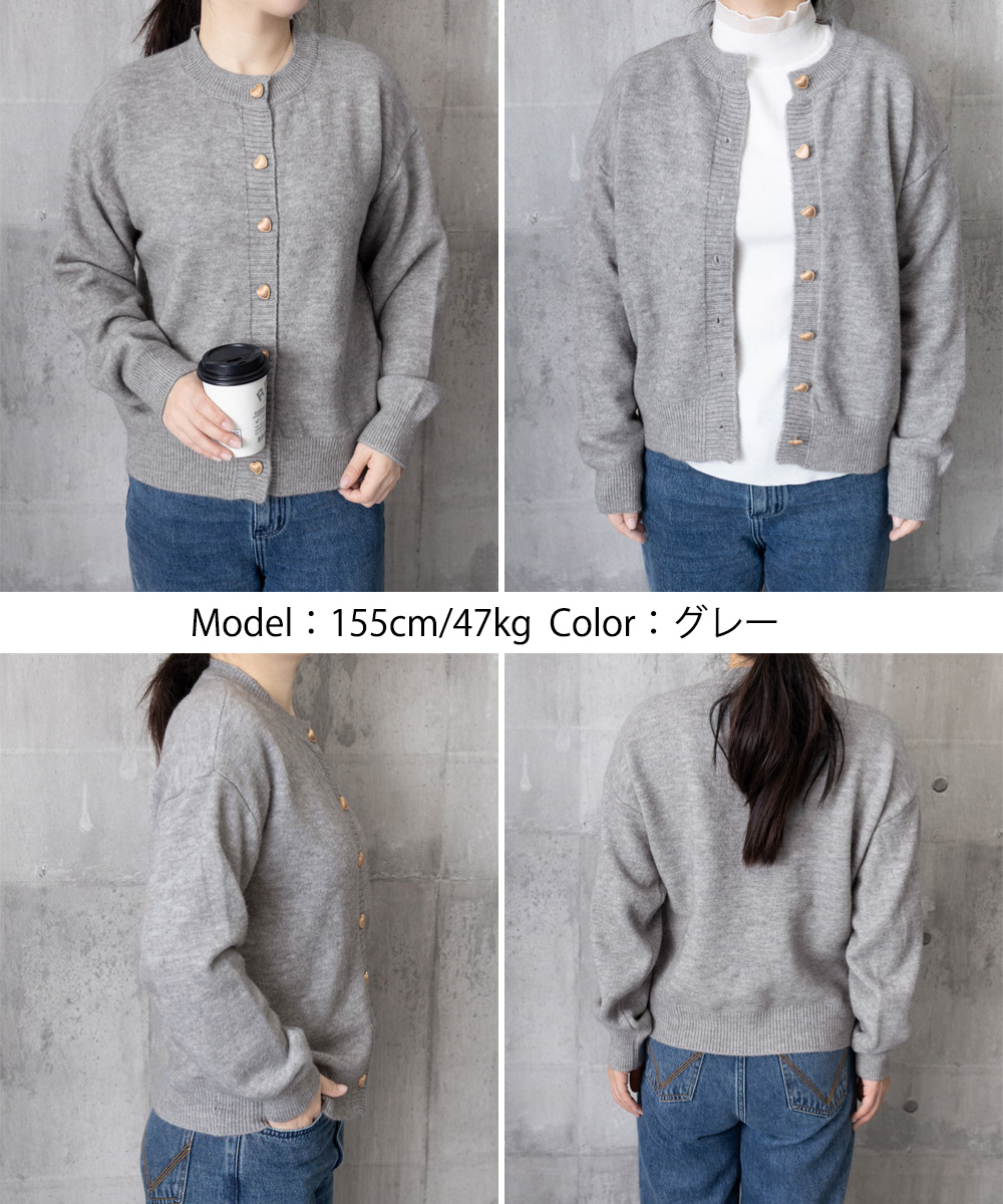 ハート型のボタンが女性らしさを演出し、やわらかい風合いで着心地抜群。