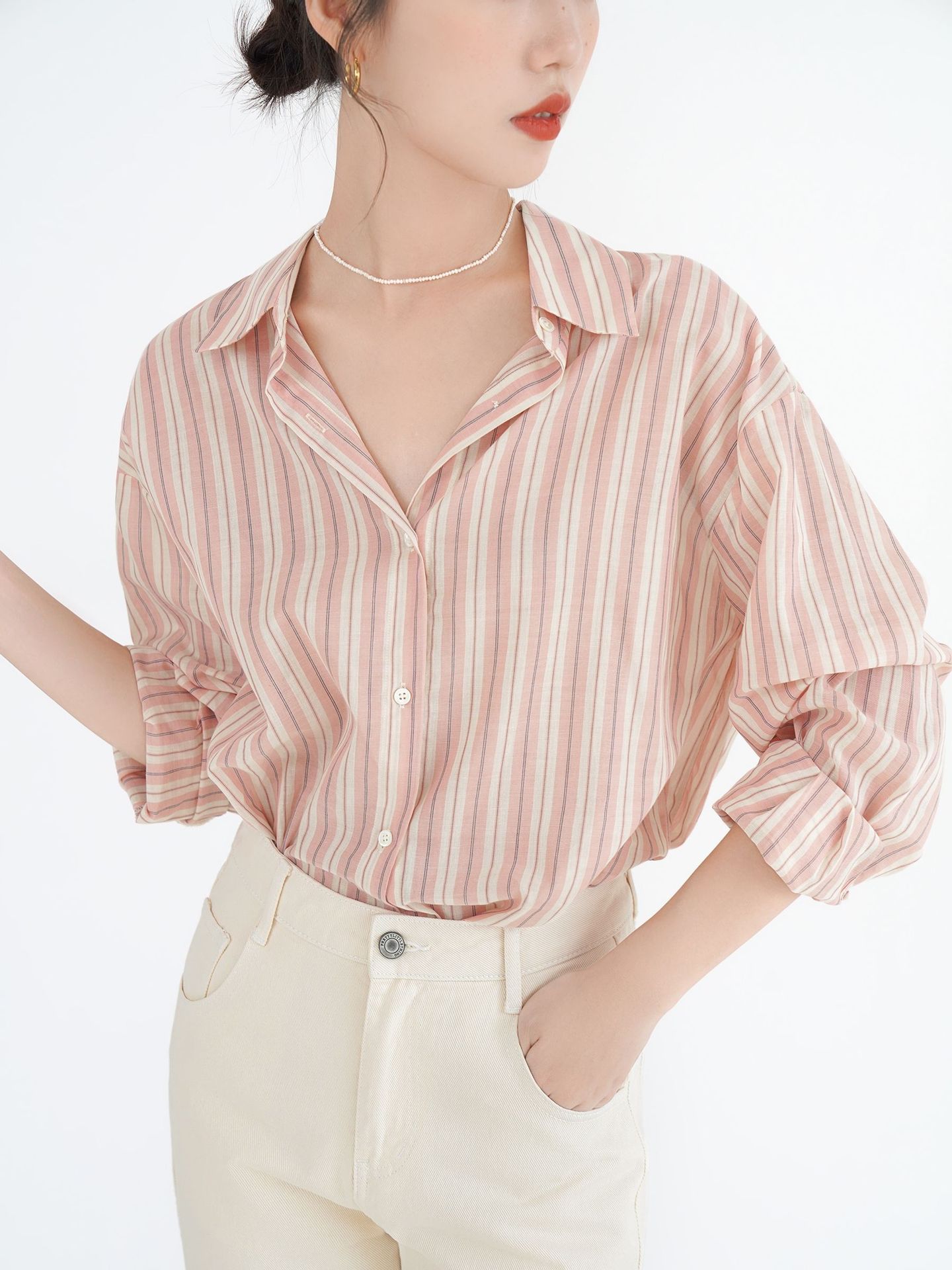 爽やかなブルーとピンクの2色展開で、きれいめカジュアルスタイルを演出。
