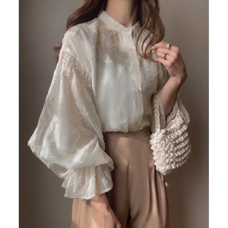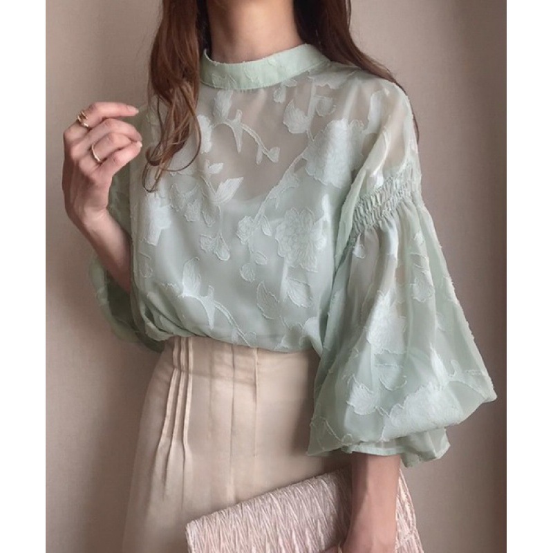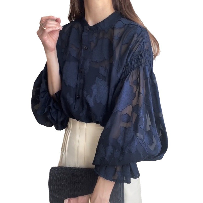 袖にギャザーを効かせたボリューム袖デザインで、大人の女性らしさを演出します。